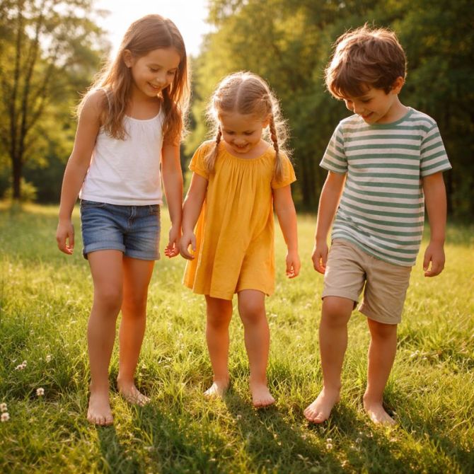 - Stand, walk, or sit with bare feet on grass, sand, or soil.